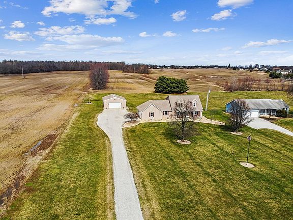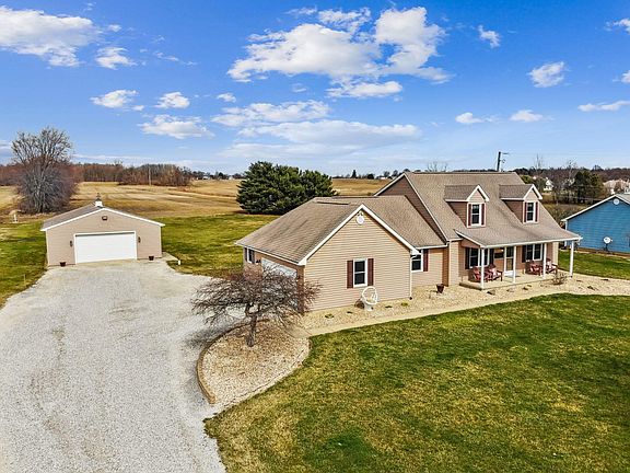 Located on 1.6 acres, this 2-story custom built home is everything you need and more - The home has a well designed floor plan and a large 1st floor primary suite - 3 large bedrooms and 2.5 bathrooms - Beautifully appointed kitchen with ample space for cooking and entertaining - 1st floor laundry with cabinetry & wash sink - The lemonade front porch and composite deck out back are perfect spaces for enjoying the Summer months - Full unfinished basement with poured wall foundation; can be easily finished out to add additional living space - Large additional pole barn with concrete floor, electric and work spaces - Pride of ownership shines throughout this property - Wonderful country living that's not far away from grocery shopping, retail and recreation! Floor plans included w/ photos.