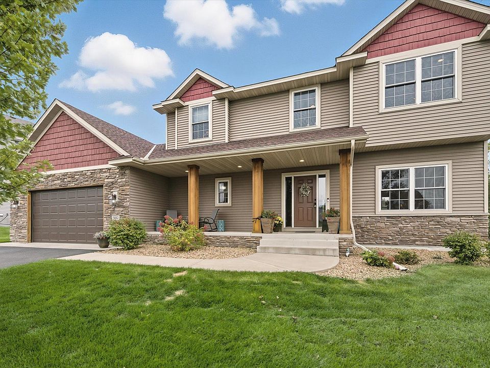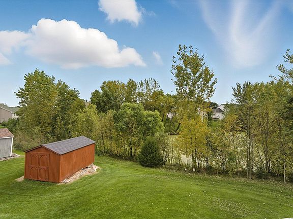 Welcome to this stunning custom-built (Ziegler Custom Homes) residence, a beautifully maintained one-owner two-story home situated on a spacious nearly half-acre city lot with pond views. The open-concept design is filled with natural light, creating a warm and inviting atmosphere throughout. The main level welcomes you with a large, inviting entry and versatile flex room, ideal for a home office or formal dining area. The living room features a cozy fireplace, perfect for relaxing evenings. The gourmet kitchen offers stunning cabinets, granite countertops, and stainless steel appliances, seamlessly flowing into the dining area for easy entertaining. Upstairs, you'll find four spacious bedrooms, including a luxurious primary suite with a soaking tub, dual vanity, and walk-in closet space. Conveniently, the laundry room is located on the upper level. The walk-out basement provides an additional 5th bedroom and living space. Potential for a 6th bedroom. Enjoy outdoor living on the maintenance-free deck, large patio, or unwind in the hot tub. The lush lawn is effortlessly kept green with a irrigation system. The oversized 24x30 garage offers ample storage or a workshop, while the 10x14 shed adds extra convenience. Completing this charming home is an inviting front porch, blending comfort, functionality, and outdoor enjoyment seamlessly. Don’t miss the opportunity to make this beautifully appointed home yours!