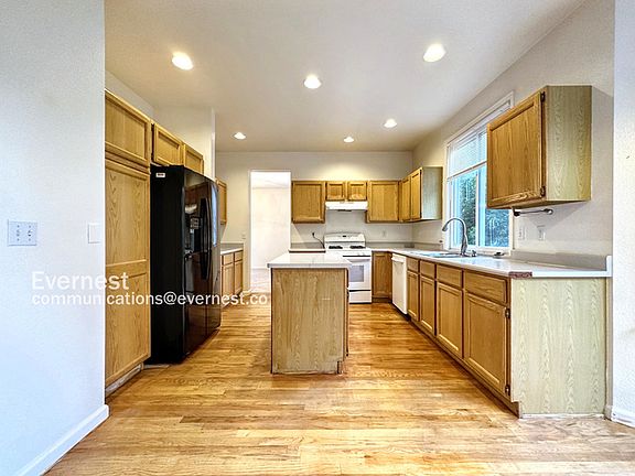 Welcome to your new home! This spacious 2,197-square-foot single-family house offers a perfect blend of comfort and style, available for rent. Featuring four bedrooms and two and a half bathrooms, this home is ideal for families or those who enjoy ample space. The heart of the house is a well-equipped kitchen, complete with a modern oven, dishwasher, and a large kitchen island perfect for meal preparation or casual dining. The living area boasts a cozy fireplace, creating a warm atmosphere for gatherings, while the large closets throughout offer plenty of storage space. The vaulted ceilings provide an open and airy feel, enhancing the home's inviting ambiance.