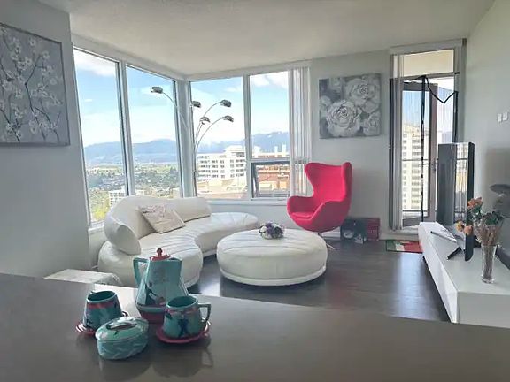 Luxury 2-bedroom central AC luxury condo unit on the 15+ floor available for rent. Central park and downtown view. Located in the quiet neighbourhood next to Burnaby Central Park and very close to Crystall mall and Metrotown shopping centre, 2 minute walk to Patterson skytrain station. Features 875 sqft, 2 bedroom, 2 full bathroom , located on the 15+ floor ,central heating and air conditioning , stainless steel appliances, stone countertop, gas cooktop, laminated flooring in kitchen and living room, carpet in bedrooms. A gym and a recreation room available on the 1st floor beside the lobby . 2-min walk to Patterson skytrain station and Burnaby Central Park. Rent includes 1 parking and 1 locker, gas, water, hot water included .Minimum 1 year lease, no pet and no smoking .Credit reference checks required ,tenant Insurance required , unit available starting from 1 Dec 2025