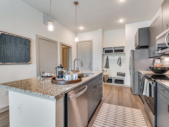 - Exterior features: *In select apartment homes, *In select buildings, 24-hour emergency maintenance, Built-in linen storage, Community-wide Wi-Fi, Doorstep trash collection, Electric vehicle charging stations, Elevators*, Flex spaces*, Keyless apartment entry, Kitchen islands* with USB outlets, Luxer One parcel locker system, Mudrooms*, Pantries, Pendant lighting, Quartz countertops with ceramic tile backsplash, Separate showers* and soaking tubs, Spacious closets, Two designer color schemes