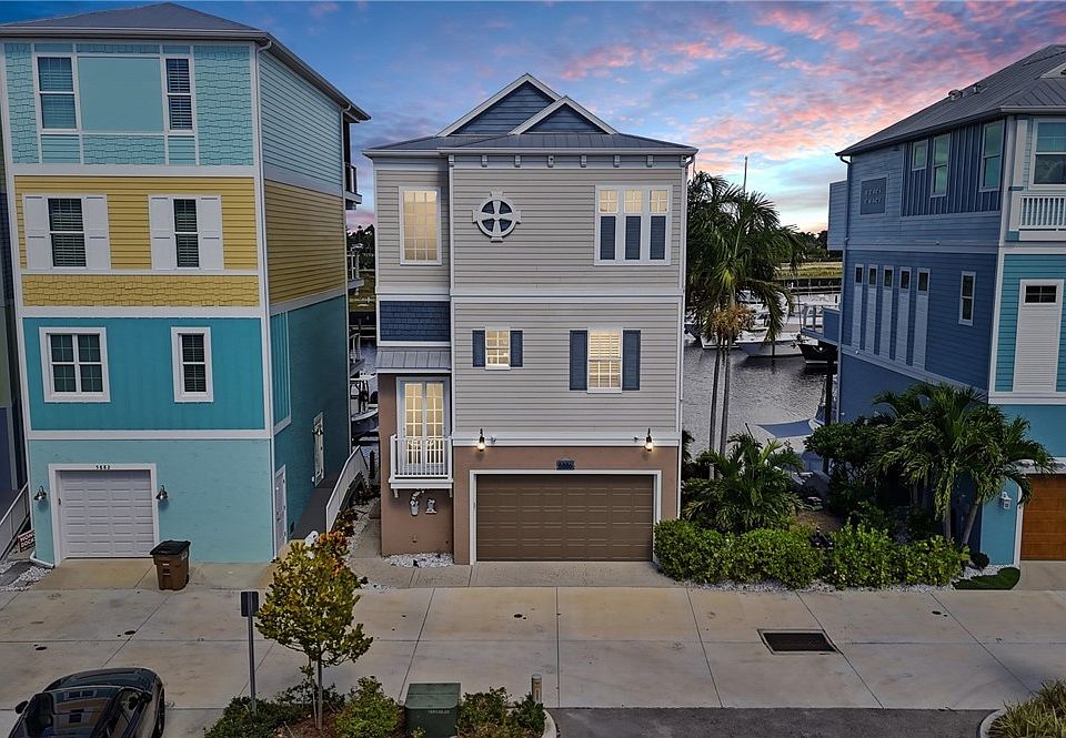 Welcome to coastal living at its finest in this Key West–inspired waterfront retreat, where character, craftsmanship, and comfort come together in a one-of-a-kind setting. Nestled within an intimate, private Cape Harbour community, this 3-bedroom, 3-bath home with two master suites, a dedicated home office, and private elevator captures the vibrant Key West ambiance—complete with colorful exteriors, detailed trim work, and a signature metal roof.