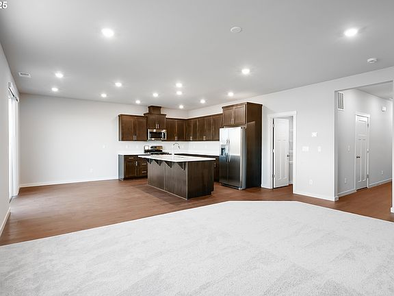 This new construction home is located in a serene community surrounded by protected wetlands and walking distance to several local parks and trails, with easy access to Fern Ridge Lake, grocery stores, schools, and restaurants. The Cypress plan features a flexible layout with an open main floor connecting the kitchen, dining room, and fireplace-warmed great room to the back patio. Upstairs, three bedrooms surround a spacious bonus room, while the primary suite includes a large walk-in closet and spa-inspired primary bath with soaking tub. Interior highlights include quartz countertops, shaker-style cabinets, LVP flooring in the kitchen and entry, LVT flooring in the baths, two-tone interior paint, fencing, and landscaping with irrigation. This home also includes central air conditioning, a refrigerator, washer and dryer, and blinds—all at no extra cost! Located on homesite 96, this home is move in ready. Rendering is artist conception only. Photos are of a similar home, features and finishes will vary. Below-market rate incentives available when financing with preferred lender.
