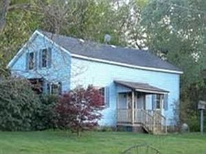 What a cute little farmhouse on a picturesque 6.6 acre lot! The outside is vinyl sided and has a large covered side porch.A small wood workshop is out back and there is a small detached garage as well.First floor has living room,dining room,kitchen,bathroom and laundry room.Second story has 2 bedrooms. Quiet countryside.Sold As-Is. Some work is needed.Cute and quaint!
