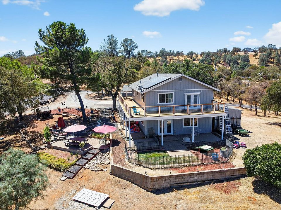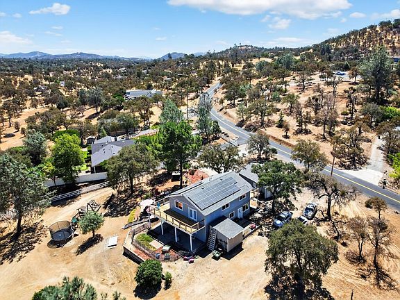3.1 acre country home near Lake Don Pedro is in horse heaven. A quality two story home is tastefully painted through out. It features custon tiled floors, a bright open floorplan with separate living, family and formal dining rooms. The galley kitchen features granite tops, refinished oak cabinetry, SS appliances and a charming dinette area. The full sized living room has complementary built in trophy shelves and a powder room. With 2 HVAC units and PV SOLAR the home still scimps on energy costs. A primary bedroom with full bath and two additional guest rooms and a 2nd full bathroom are upstairs with an open floor plan family room and double doors leading to the newly refurbished wrap around deck. The views of the valley and nearby hill scapes are expansive and refreshing. Stepping out back you find a large playground for the kids and ample patio decking and BBQ area. A horse corral with tack room and hay storage are beyond the patio, in the distantce. Wide HOA trails stretch nearly 145 miles through out the community, so horse back riding and hiking are a forever thing here. There are two storage sheds and a two car enclosed garage. There is plenty of RV, trailer and ATV room outside. With lakes Don Pedro and McClure nearby the recreation seems endless. LETS GO BOATING!!