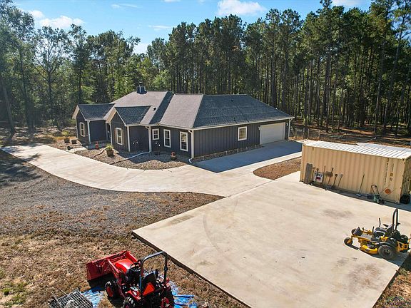 Perched at the top of nearly six wooded acres, this stunning 2023 custom-built home with 2271 sq ft and attached garage perfectly blends modern comfort with peaceful country living. Featuring 4 spacious bedrooms and 2 beautifully appointed baths, the home showcases quality craftsmanship and thoughtful design throughout. Enjoy custom finishes, a whole-house generator for peace of mind, and a completely filled deep well ensuring reliable water access. The property is fully fenced, with a separate fenced backyard ideal for pets or outdoor entertaining, and an electric security gate for added privacy. Additional amenities include the beginnings of a storm shelter (needs a door and a vent), a concrete slab ready for a shop or outbuilding, and landscaping that enhances the home’s natural surroundings. With its combination of comfort, security, and outdoor beauty, this property offers the perfect private retreat while keeping you close to modern conveniences.