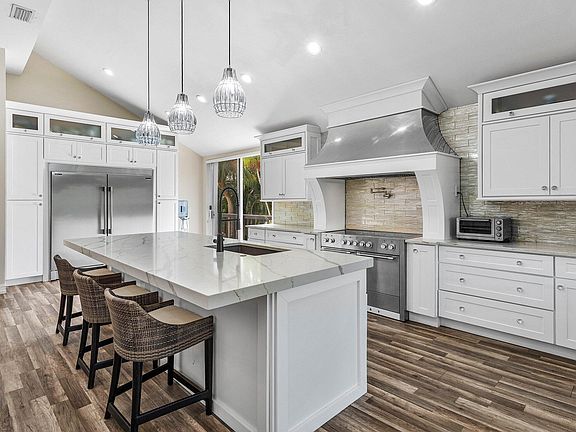 Experience modern elegance in this 4-bedroom, 3-bath condo with a 2-car garage in the award-winning Broken Sound Club. Enter by private elevator or open staircase to find a dramatic accent wall and soaring ceilings that set the stage for the home's sleek design. The chef's kitchen is outfitted with double ovens, larger refrigerator/freezer, a custom 8-foot stainless range hood, and an oversized island designed for entertaining. Wall-to-wall impact windows fills the great room with natural light and frames stunning golf course views, complemented by a unique TV feature wall and oversized ceiling fan. A dining area that seats 14+ beneath designer light fixtures plus a custom marble bar makes this home ideal for gatherings. This residence combines comfort and sophistication.
