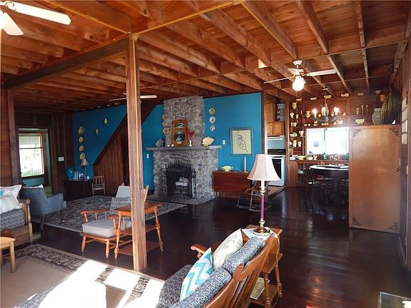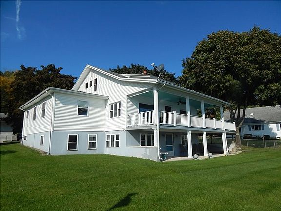 Welcome home! This house boasts plenty of character. Almost 100' lake frontage with own boat launch. New dock! 5 bedrooms including a 1st floor master suite with tub. Level lot with plenty of yard to play yard games. Wrap around porch which provides plenty of lake views. Main fireplace in living room, wood burning stove in basement to provide additional heat for those cool winter nights. Basement provides additional entertaining space with numerous options for additional bedroom, 2nd kitchen, living room and workshop. Detached 3 car garage with plenty of storage and attached apartment. Close to Geneseo and 390. This is a must see. Come take a look!