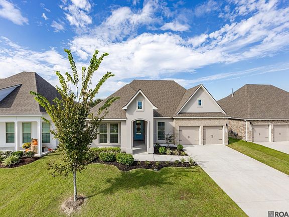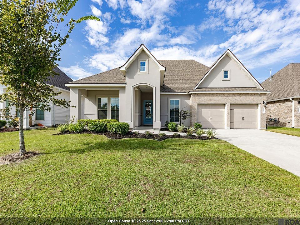 The Nottingham floor plan offers the most square footage in a single-story layout—perfect for families and guests alike. The inviting guest suite with a private bath at the front of the home provides comfort and privacy for weekend visitors. This home features a separate dining room and spacious living area, both enhanced with custom accent walls that add a touch of modern style and warmth. The large owner’s suite includes a walk-in closet, soaking tub, separate shower, and double vanities. Additional features include two more bedrooms, a study, a hall bath, a utility room, a mudroom, and a two-car garage. Built on a post-tension slab with a 10-year structural warranty, this home also offers Smart Home technology for added convenience and security—WiFi thermostat, keyless entry, garage door opener, video doorbell, and voice/app control compatibility. Modern finishes include 3 cm granite countertops, stainless steel gas appliances, and hard surface flooring throughout. Enjoy resort-style living in this beautiful, family-friendly community surrounded by scenic bayous and a golf course. Amenities include a community restaurant, tennis courts, swimming pool, fitness center, playground, and a large picnic pavilion overlooking serene ponds and green spaces. Discover why The Park at the Island is the perfect place to call home!