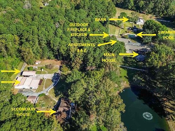 Don't miss this RARE OPPORTUNITY to own over 18 picturesque acres in the Smoke Rise area, just minutes from Stone Mountain Park. This one-of-a-kind property offers endless possibilities - from creating a private estate or horse farm or multi-generational family compound or developing a small neighborhood. Gently rolling land surrounds a serene 1-acre ornamental pond and includes 4 residences, 3 fenced pastures, multiple outbuildings, and extensive outdoor living spaces. There are two single-family homes plus two residential apartments on the property. The main residence is a spacious 3,711 SF ranch with 4 bedrooms and 3.5 baths. A second home offers 1,599 SF with 2 bedrooms and 2 baths. Behind the main home are two additional apartments - one upstairs at approximately 1,000 SF and one downstairs at approximately 900 SF - each with 1 bedroom and 1 bath. Outdoor features include a heated saltwater pool and spa, an outdoor kitchen with stone fireplace, and several gazebos and pergolas connected by accessible walkways and ramps. An 1,800 SF barn with 2 stalls (w/ the option to add 3 more) including power and water service, plus a large workshop/garage with over 2,000 SF, provide exceptional space for storage, hobbies, or equipment. There is also a separate RV open pole barn. This property is made up of 4 parcels: 5854, 5888, 5912, & 5920 Old Stone Mountain Rd. Acreage: 18.02 acres Zoning: Residential With its combination of acreage and incredible location just minutes from major highways, this property offers a rare opportunity for estate buyers, equestrian users, or investors with vision. It is challenging to convey the beauty and opportunity of this property in just words and pictures, instead you should schedule an appointment to experience it in person.