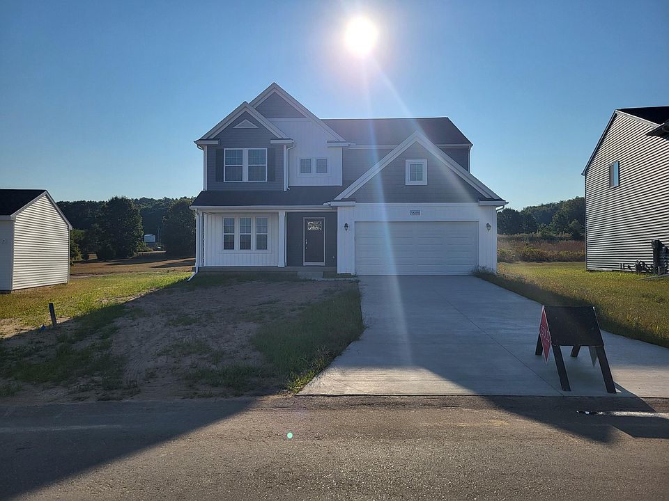 Newly constructed colonial in the Concord Farms Community. This 2-story home boasts features including: 10-yr structural warranty, energy efficiency, 200 AMP service, 20x24 attached two stall garage with insulated door, 14x14 patio, French Door entry to den, EV Charger Prep, rough in plumbing for future basement bath, quartz counters including island with extended top in design kitchen upgrade, GE stainless kitchen appliances including microhood, dishwasher, and range, vinyl flooring on entire main level, mudroom access from garage to kitchen, dual sinks in master bathroom, upper level laundry, and large covered front porch entry.