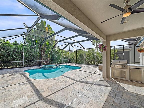 Welcome to this extraordinary masterpiece, where sophistication meets contemporary luxury in the coveted Palmer Ranch community. This stunning four-bedroom, three-and-a-half-bathroom residence spans nearly 4,000 square feet of meticulously crafted living space, built in 2014 with an unwavering attention to detail. The heart of this home beats within its gourmet kitchen, a culinary symphony featuring a newer Viking gas cooktop, a large walk-in pantry, an elegant subway tile backsplash, and double ovens. The magnificent granite-topped island, accommodating four bar seats, serves as the social epicenter, seamlessly connecting to the morning room and butler's pantry, complete with walk-in storage. Ascend the striking iron and wood staircase to discover the second-floor sanctuary, housing a versatile game room, a guest suite with a private bathroom, two additional bedrooms, and flexible storage space. The primary bedroom on the first level boasts an enormous California-chic walk-in closet, while the spa-inspired bathroom showcases granite countertops, dual sinks, and a Roman-style glass-enclosed shower. Step outside to your private oasis featuring an extended lanai with gas-heated saltwater pool and spa, a covered entertaining area, and full-screen enclosure—all positioned on a desirable corner lot. The pool heater was replaced one year ago. Arbor Lakes residents enjoy resort-style amenities, including a splash park, swimming pool, covered lounging areas, fire pit, playground, barbecue facilities, and sports courts. This A-rated school district location offers unparalleled convenience to Legacy Trail, championship golf courses, Interstate 75, diverse shopping and dining venues, while Siesta Key's world-renowned beaches beckon just minutes away.
