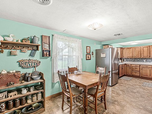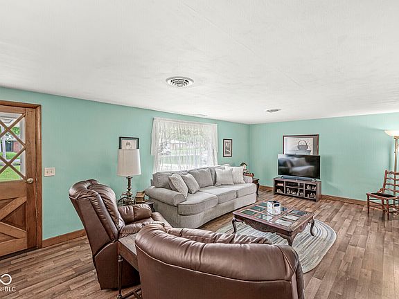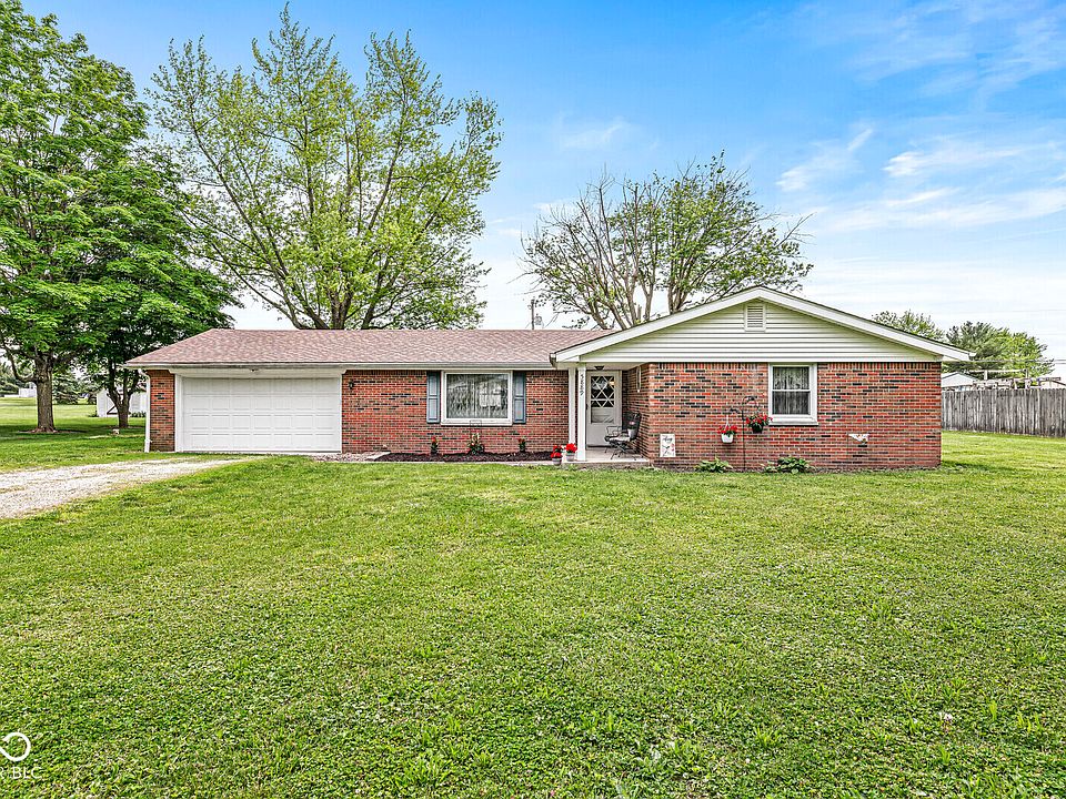 Welcome to this well-maintained 3-bedroom, 1.5-bath ranch home located in Frankton. Situated on a generous 0.42-acre lot with no HOA, this mostly brick home with vinyl siding offers both comfort and functionality. As you step inside, you're greeted by a spacious living room-perfect for relaxing or entertaining. The home features laminate flooring throughout the living room and bedrooms, providing a warm and cohesive feel. The eat-in kitchen has been updated with quality cabinetry featuring soft-close drawers, neutral countertops, tile backsplash and stainless steel appliances. All kitchen appliances stay, making it truly move-in ready. Each of the three bedrooms offers generous space and good-sized closets. Additional updates include a newer roof, heat pump, air conditioner, oven/range, well pump, and water softener. The washer, dryer, and garage refrigerator are also included. The large backyard includes a mini barn for extra storage and space to enjoy the outdoors. With thoughtful updates, solid construction, and a peaceful setting, this charming ranch is ready to welcome its next owner.