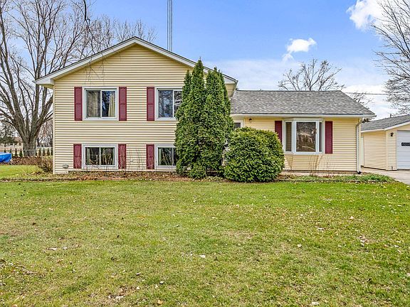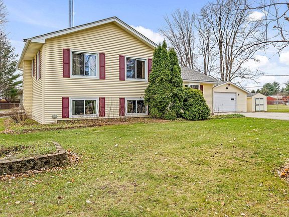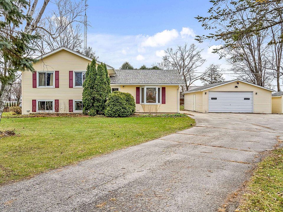 Move in ready, well maintained, Trilevel style home with oversized 2.5 car garage and storage building. The home has newer siding and soffits, roof with architectural shingles and windows. Nice outdoor hot tub, tv antenna tower stays. Large brick fireplace with heatilator in family room (heats home). Perimeter of the lot is fenced on .8-acre lot. 2028 Sq Ft. 4 Bedrooms w/ hardwood floors, living room, Open eat in kitchen w/ new cabinets. New Half Bath! County taxes. UHP Home Warranty included