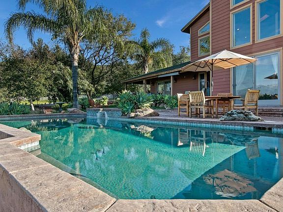 Nestled in the peaceful hills of Alpine, the stunning 20-acre Ranch offers a rare blend of seclusion, luxury, and natural beauty. This exceptional property features a thoughtfully designed custom home, expansive equestrian facilities, a private pond, and a resort-like pool and jacuzzi area, all framed by breathtaking views of the Cuyamaca Peaks and Viejas Mountains. Bordering the untouched Cleveland National Forest, it truly embodies the essence of country living with complete privacy and tranquility. The 3-bedroom, 2-bathroom home is a masterpiece of craftsmanship, showcasing solid oak flooring, imported travertine tiles, and custom wood details throughout. High ceilings with exposed wooden beams create a spacious, inviting atmosphere, while the open ranch-style layout is perfect for both everyday living and entertaining. A versatile loft provides endless possibilities, whether as an additional bedroom or a large office.The gourmet kitchen is a chef’s dream, featuring a generous island, ample wood cabinetry, stainless steel appliances, and a walk-in pantry. The large primary bathroom is a retreat in itself, complete with a luxurious jacuzzi tub and tiled shower. Two additional bedrooms each offer sliding doors leading to the outdoors, while the home also includes a guest bathroom and a convenient laundry room. Designed for comfort and efficiency, the home is equipped with fire-resistant Hardie board siding, Anderson wood sash windows, a dual-zone HVAC system, and a whole-house water filtration system. The stunning surroundings can be fully appreciated from the wrap-around front porch, the expansive pool and spa area, and the beautifully landscaped gardens. This rare property offers the ultimate in peaceful, private country living, just waiting to be called home.