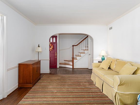 Charming stone and vinyl Colonial on a quiet Woodland street with numerous updates and great curb appeal. Beautiful hardwood floors throughout, large living room with gas fireplace and bay window, formal dining room, and a lovely eat-in kitchen with stainless steel countertops and adjoining half bath. First-floor 16x11 tile-floor family room opens to a private patio—perfect for entertaining. Upstairs features four spacious bedrooms and two updated full baths, accessed via a classic oak staircase. The waterproofed lower level includes a large finished rec room with stone gas fireplace, tile floors, laundry area, and extra storage. Recent updates: Roof (2021), Furnace & A/C (2020), replacement windows, vinyl siding, and glass block windows. Lots of built-ins and storage throughout. Conveniently located just one block from bike trail and community pool, with easy access to shopping and main roads.