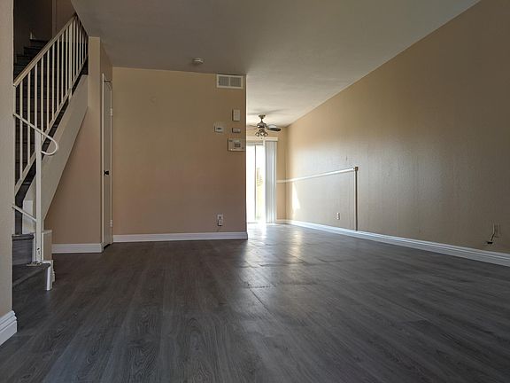 Very nice 1060 sqft townhouse with 2 bedrooms and 1.5 bathrooms. Two stories. End unit. Half bath downstairs. Full bathroom and two bedrooms located upstairs. Custom kitchen and bathroom cabinets. Vinyl plank flooring throughout unit. Comes with microwave oven, dishwasher, electric range/oven, refrigerator, and washer/dryer. Private rear fenced patio with access to one car detached garage and one assigned open space. Community swimming pool. Located in nice complex with convenient location to schools, shopping, restaurants and community park. No smokers. $2,600 covers rent. Tenant pays all utilities except water and trash pickup.