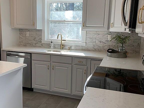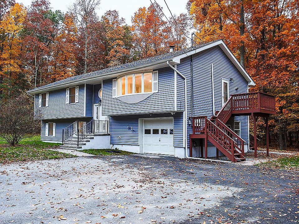 Remarkably stylish. Completely renovated with a contemporary flair, this 2746 square foot, 4 bedrooms, 3 bath raised ranch home is ready for its new owners. Nothing to do but unpack your bags and move in! The main level features an open concept living/dining/kitchen area with beautiful light fixtures, recessed lighting, and high-end finishes. A gorgeous, trendy new kitchen with plentiful counter space and a large island with seating for 3 make this home modern as well as welcoming. Down the hallway, there are 3 large bedrooms with gleaming hardwood floors and a spacious shared bathroom. The Master Bedroom has a beautiful custom tiled en suite with an oversized shower. Downstairs you will find an additional FULL bathroom, family room, and the 4th bedroom. An ample laundry room on this level makes wash day a breeze. There is also access to a 1 car attached garage... great for storage or to park your car during the snowy months! Situated on a lovely 6-acre wooded lot off a quiet country road at the foothills of the Shawangunk Ridge, enjoy nature and open space! Under 15 minutes drive to the hamlets of Pine Bush, and Wallkill, you are not far from the conveniences of town. Close to Sam's Point Preserve, Minnewaska State Park, numerous local wineries, Angry Orchard headquarters, and weekend farmer's markets.