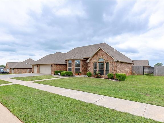 Need room to entertain? This gorgeous custom built home sitting on 2 lots in Blanchard's Fox Run will not dissapoint. A magnificent chef's kitchen with TWO OVENS and TWO Microwaves, large center island, gas stove and abundant storage makes whipping up your favorite meals a dream! The main living space is centered around a cozy brick fireplace and open to the spacious formal dining room. A large flex space connected to the kitchen could serve as an extra living, work or dining space. This split plan offers the Master suite privacy with a large ensuite that includes a tile walk-in shower, separate soaking tub and double sinks and a large Australian closet. Both secondary rooms share a large bathroom and have large closets. The OVERSIZED THREE CAR GARAGE offers plenty of parking and storage opportunities. In the back yard, there is plenty of room to enjoy the outdoors with the massive covered patio space, large fenced backyard and cute shed with electric for extra storage or workspace. New roof to be installed before closing!