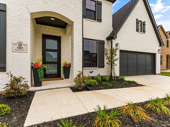 Absolutely Gorgeous New Custom Home in Frisco ISD. This brand-new custom home sits on a premium 85 x 115 ft corner lot, backing to a greenbelt and facing north. The open-concept floor plan features blonde wood flooring throughout the first floor, with the primary suite, guest suite, study, and media room all on the main level. Exterior upgrades include white brick with black window frames and a dark roof. Inside, the home showcases luxury finishes: quartz waterfall island, floor-to-ceiling cabinetry, designer pendant lighting, gold hardware, custom wallpaper, upgraded plumbing fixtures, and $$$ tile and quartz throughout. Additional highlights include modern accent walls, soaring ceilings, wood stairs with iron balusters, shaker-style doors, and gigabit ethernet wiring. The primary retreat offers cathedral ceilings, walls of windows, a freestanding tub, dual vanities, a seamless glass shower, and a spacious walk-in closet. Upstairs, you’ll find two en-suite bedrooms and a large game room. The oversized 2.5-car garage includes epoxy flooring and wiring for cameras and surround sound. Model-home-quality finishes in every detail.