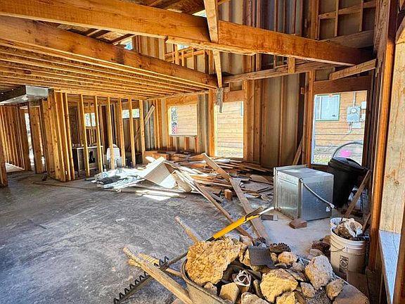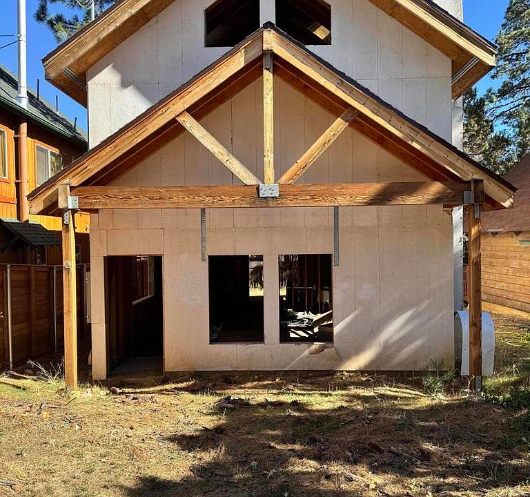 Contractor Opportunity - Framed Cabin Ready for Completion 589 Pine Lane offers a partially built 3-bedroom, 2.5-bath home with framing and roofing already completed. Contractors, investors, or buyers looking to complete a custom cabin in Big Bear Property Details (Per Plans): 3 Bedrooms Total Primary bedroom suite planned for the second floor Two additional bedrooms on the main floor 2.5 Bathrooms Jack-and-Jill style full bath on the first floor Full bath in the second-floor primary suite Powder room near the entry (per plans) Layout & Features: Open-concept main level with kitchen, living, and dining areas Covered front porch Second-floor ''open to below'' area Estimated 1,200-1,500 sq ft at completion (buyer to verify with plans and county) Construction Status: Framing complete Roof installed Interior not finished Buyers to verify square footage, permits, and all construction details.Electric utility pole is on property , per seller they do have water and gas