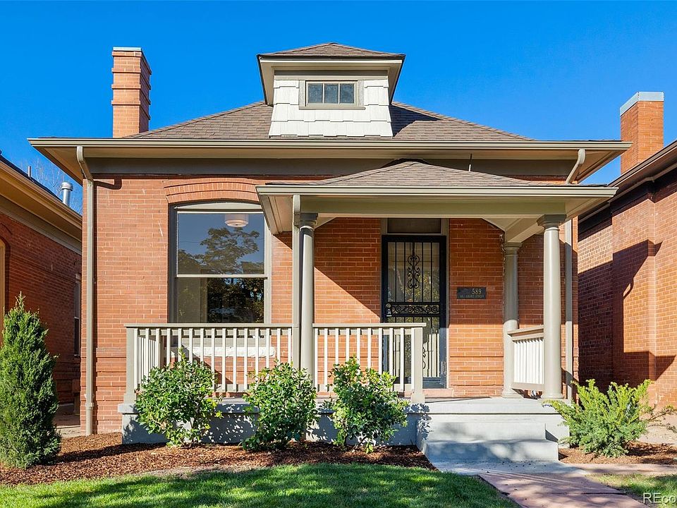 Beaming with natural light, this enchanting 1895 residence has been thoughtfully updated with a wonderful blend of historic character and modern convenience. Brilliant finishes include wood floors, high ceilings, exposed brick, all new lighting (inside and out), and large windows allowing abundant sunlight inside. Enter the classic home from the covered front porch to a welcoming living room with exquisite fireplace, open to a generous dining room with handsome built-in hutch and newer gourmet kitchen beyond, featuring white cabinetry, open shelving, quartz countertops, plus new range and refrigerator. The primary bedroom includes a spacious walk-in closet, and the new full bath is beautifully accented by lovely beadboard wainscoting, subway tile, and penny tile flooring. A second bedroom, laundry and mud room are also located on the main floor, and the lower level offers ample storage space and mechanical room. Impeccably maintained and upgraded throughout, this red brick charmer is complete with private back yard including large patio with firepit, and oversized two-car garage. Positioned perfectly on a delightful treed street, just blocks from Washington Park, and near all of the retail shops and restaurants residing in Downtown Denver and Cherry Creek.