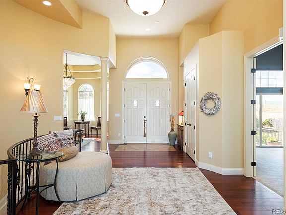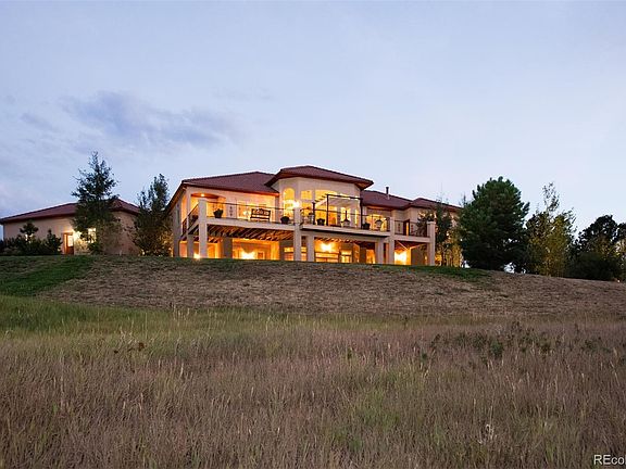 Secluded Contemporary Ranch Style Home in a Gated Community with Awesome Curb Appeal on a cul-de-sac with Majestic Views backing to Open Space on 2.58 acres. Contemporary and Traditional design inspires Elegant and Casual entertaining, High Ceilings, an unbeatable Floor-Plan, Everything you need to go about your day is located on the Main Floor of this Home! Inviting Foyer, Study with Views and a Courtyard Patio, Great Room opens onto a wraparound deck for outdoor entertaining, enjoying beautiful sunsets and overlooks a Peaceful Country Setting. Gourmet Kitchen with gorgeous granite, expansive center island for dining, gas cooktop, double ovens, coffee station, Butler's Pantry with wine cooler, and an ideal casual dining area off the Kitchen that opens into the Great Room. The Front sitting room enjoys mountain views, but could be formal dining if desired or the perfect spot for grand piano. Main floor luxurious master suite with sitting room is private on the west side of the home and features a two-sided fireplace and 5-piece bath with jacuzzi bathtub and has access to the wraparound deck. There are 2 beautfiul powder rooms on the main floor, as well as a generous laundry room, sink and built in cabinetry. The lower level features 3 en-suite Bedrooms, a Recreation room with wet bar and beverage cooler, plenty of room for pool table, host movie night in the home theater, and abundant storage area available on this level. Mature landscaping, 4 Car Oversized Garage, Fenced area for pets, Two 50 Gallon Water Heaters, Ceiling Fans in All Bedrooms, Water Softening System, 3 Fireplaces and more. Private retreat with a country feel, views of horses, minutes to major shopping and easy access to Denver.