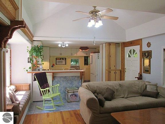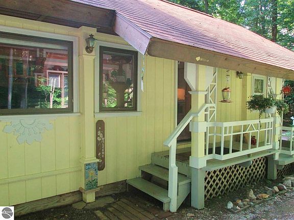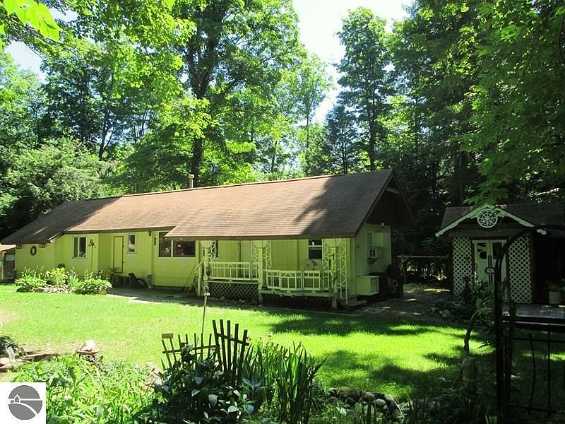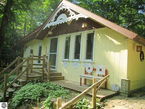 Great get-away located where Leelanau, Grand Traverse and Benzie Counties meet. Just minutes to Empire beaches or downtown Traverse City. Drive down the tree canopied road to this artistically finished home 3 bedroom home on 4.83 peaceful acres filled with beech, maple and cedar trees and perennial gardens. This unique home has used the square footage very creatively and efficiently for plenty of storage inside the home. There are two storage buildings and a workshop with 110 volt, 30 amp service and wood stove. With hand-crafted trim details, built-ins and decorative accents completed by a master wood worker both inside and out, this home is anything but cookie-cutter. Home also features hardwood floors, drywall through most rooms and main floor laundry. Several outdoor porches and decks allow you to enjoy the birds, fox and deer among this incredible natural setting. Third bedroom is three steps down and is currently being used as an office and has an exterior door. Property includes two parcels with separate tax id numbers- (house is on 2.93 acres and also includes the 1.89 acre parcel.)
