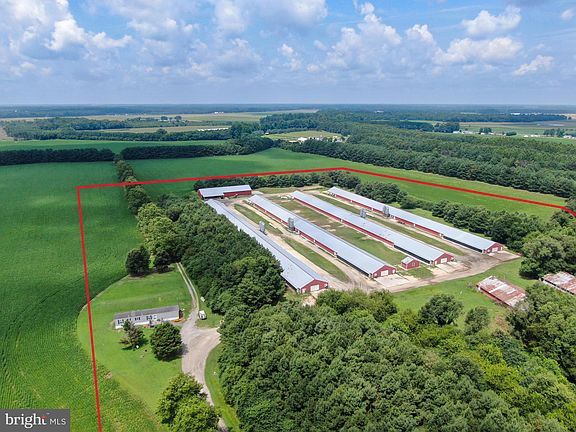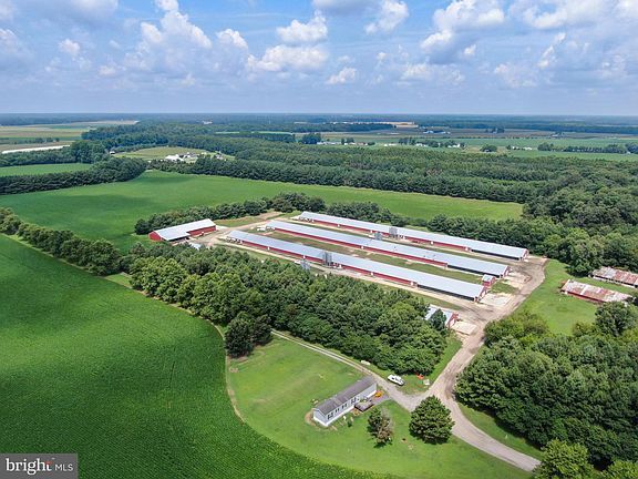 Four house poultry farm on +/- 22.24 acres currently growing for Allen Harim. Poultry houses are all 40x500s built in the mid-1990s and fully updated in 2024. Recent upgrades include: all new water lines, new top railings, new heaters in all end chambers, solid side walls (plywood and metal) on all four houses, one new model 50 rotem controller, new regulators, and new stand tubes in all chambers, new turbo chick mates, new feed bins, concrete and cross augers. The farm also has two homes: First home is a nicely renovated 4 bedroom 2.5 bath stick built home. Second home is newer 3 bedroom 2 bath modular home. The farm is further improved by a detached garage with workshop, manure shed, and two older 40x300 poultry houses (no longer in production). One of the two older poultry houses contains concrete tanks and infrastructure for a 300,000 gallon fish breeding operation. Farm is subject to forest conservation easement. Farm is on high alert for avian influenza. There will be no showings of the farm while birds are in. Birds are currently out but will be placed on 3/10/2025.