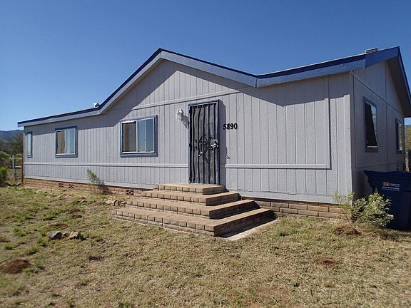 Lovely 1.14 Acre Manf home with fenced back yard sitting on a VA Block Foundation. New block fenced-in private patio, screened in porch with security doors. You can open your French doors from the dining room to enjoy the fresh air. New remodeled bathrooms and kitchen. This 3br/2ba 1344 Split Plan home features new Wood Laminate floors throughout. Very open plan with Dining room area plus room for eat in kitchen. Central Air (AC) and gas heat. Good size Master bath boast a garden tub plus a stand up shower. Walk-In closets. Huge full length concrete and covered back patio facing wonderful Mtn Views gives you a great private area to rest. Back yard fully fenced with gate. Great for RV parking. Block steps into each door adds to this fantastic home and only minutes to SV shopping.