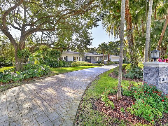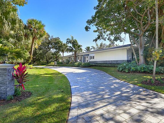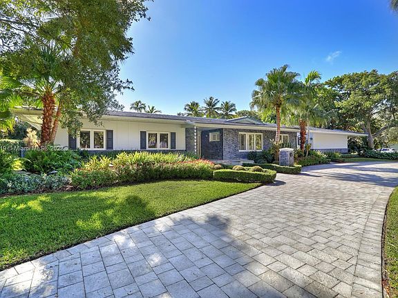 Exclusive Pine Bay Estates, rarely a home listed for sale in this small community in South Coral Gables. This mid-century ranch, sitting on a 3/4 acre corner lot has been meticulously updated to today's standard of living. 4 bedroom and 3 baths with complete hurricane protection including newly installed high impact glass windows and doors. Total Sonos sound package provides entertainment inside and out. The newly resurfaced salt water swimming pool has a Diamond Bright interior. Set way back off the street, the newly done circular driveway was paved with brick pavers. The huge backyard can be enjoyed through walls of glass or by using the large entertaining screened in porch next to the pool. The screen panels can be raising or lowered electronically with a remote. Enjoy the privacy!