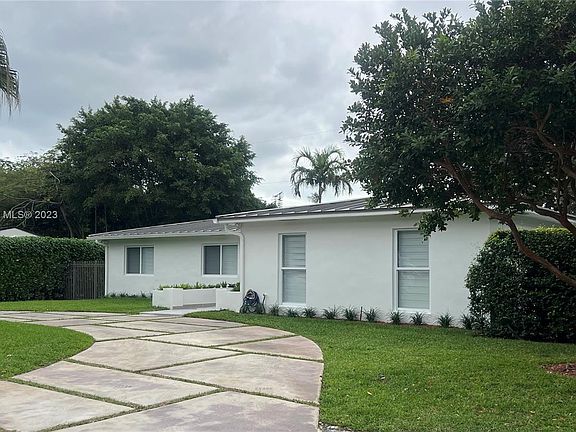 House to live in, entertain, and enjoy with all the latest accoutrements. Nestled in unincorporated Miami-Dade between Coral Gables and South Miami. Fenced corner lot. Walk to University of Miami. Near US 1, SW 57 Ave, SW 56 St (Miller Rd), airport, shopping districts. All new: open floor plan; uniform oversize porcelain floors; bathrooms, wood kitchen cabinetry with quartzite countertops; built in appliances; window treatments; all doors and hardware; interior and exterior paint; 5 ton A/C including duct work; ceiling insulation; sprinkler system including pump; concrete slab semicircular in front drive way and on the side; recessed lights; resodded and landscape. Metal roof is 8 years old. Updated electricity 8 years ago. Septic tank in front yard area, PVC pipes under the house.