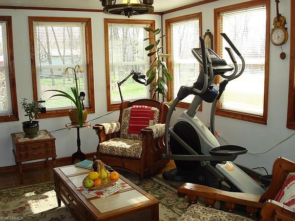 Comfortable 3 bedroom, 2 bath Ranch on 2.7 acres. Eat-in-kitchen is open to dining area & close to sliders opening onto a heated 15x12 sunroom. Take your pick, sun room in the back or large, open & covered porch in the front. Formal living room has high, slanted ceiling & gas fireplace. 26x24 garage with loads of shelving for storage. Basement is painted, has sump pump with generator back up, water softener & 2012 HW heater. There is an extra 2 car garage with attic and a covered patio. Also, a large storage building and a smoke house. Both garages have separate drives and could be used for small business ventures such as a hair salon, car repair or other small engine repair shop. Great acreage for grazing or raising bees. Appliances go with sale. Some furniture for sale.