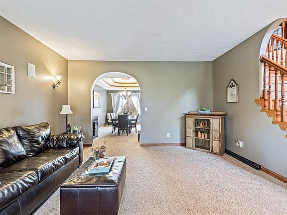 Great location for this 5 bedroom, 2.5 bath colonial with an oversized three car garage located on just over an acre of land. This one has so much to offer w/over 3400 sq. feet and another 1000 sq. feet in the finished walk-out basement. Basement offers a 5th bedroom, work out room, theatre room and a huge 42 x 13 rec room w/pool table. Theatre room has projector and theatre room couches included in sale. First floor offers an open floor plan w/a large eat-in kitchen w/island that leads to a large family room w/fireplace and a huge vaulted wood plank ceiling. New first floor laundry room in 2021 w/new cabinets. There are two staircases that lead to the second level, one at the entrance w/a grand wooden staircase and another in the back off the living room. Upstairs offers a large loft area and 4 large bedrooms. Master bedroom has a walk-in closet and master bathroom w/jetted tub. Back yard is great for entertaining w/large deck, new above ground pool in 2020 w/solar cover and small patio near walk-out basement. The wooded back yard is great for privacy. Too many updates to list all, but roof new in 2020, A/C and furnace new in 2019 w/a three zone heating system for each level. Call for complete list of updates. This house will make a great place to call home.