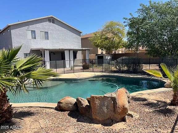 This Desert Oasis with a pool, views and updates could be your serene escape. It sits on a spacious lot in the peaceful outskirts of town and offers a perfect blend of desert tranquility, convenience and an ideal location just minutes from QC, San Tan Valley, and historic downtown Florence. Step outside to your private retreat featuring a sparkling pool & water feature, extended covered patio, and ample room for entertaining or unwinding under the Arizona sky. Features fresh exterior paint, while inside you'll find newly updated fixtures and finishes. Unique to this property is a shared RV gate. Enjoy both quiet mornings on the patio or quick access to nearby shopping & dining. A true desert gem!