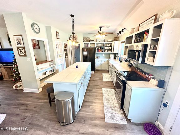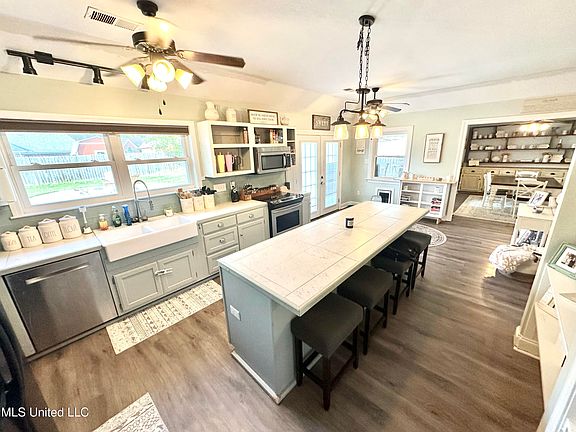 New listing in the heart of Olive Branch with updated kitchen and bathrooms! You will love this plan that offers a very open floor plan and great layout! Kitchen has large island with tiled counters, tiled backsplashes, farm sink and stainless appliances. There is a formal dining room with cabinets and built in shelving that looks amazing and breakfast area. Lot of extra shelving throughout the home and no carpet! Primary bedroom is large and has a sitting area and primary bath has tiled surround walk-in shower, new dbl vanities, and separate tub. The 2nd bath also has a walk-in shower w glass doors, new vanity and tile. This is a split floor plan and windows were replaced few years ago. Now onto the backyard! Once you walk outside, you will enjoy a fenced in back yard, patio with extra concrete, covered back patio area and an outdoor firepit with concrete around it!