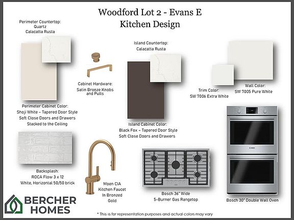 New Home - UNDER CONSTRUCTION! Don't miss this beautiful new Bercher Homes community! The Evans E on Lot 2 will include 4BR/ 4.5BA, a bonus room upstairs, 3 car garage, and full unfinished basement. The Evans is an open-concept floor plan that features the Primary Bedroom on the main plus a guest bedroom w/ ensuite! A large family room includes a wall of windows, a wood-burning fireplace, and vaulted ceiling w/ decorative beams. Enjoy the generously sized kitchen with extensive cabinetry that features soft close doors and drawers, Bosch appliances, Quartz countertops, pendant lighting, and more. A huge island is perfect for eating at or displaying that awesome charcuterie board while hosting a party. The Kitchen is open to the adjoining breakfast room and family room. The primary bathroom features a large tile shower with a glass enclosure, raised-height double vanity, a huge walk-in closet, and direct access into the laundry room. Beautiful Hardwood floors on the main floor, upstairs hallways, and loft. 2 large secondary bedrooms upstairs, each with a private bathroom, plus a large bonus room. The brick exterior includes beautiful architectural details, arched entrance, and metal porch roof. Enjoy a covered patio and extended decking overlooking your private backyard. Double-pane Pella windows throughout. All Woodford lots include an irrigation system for the sodded areas of the yard. Three-car garages on all plans. For your peace of mind, we include a Builder's Warranty, a Structural Warranty, and installation of an in-wall Pestban system. Come and experience the Bercher Homes difference. With our design process, this can be the home of your dreams. Pricing does not include buyer-specific upgrades and options. Lot premium may apply. Woodford is at the intersection of Burnt Hickory Rd & County Line Rd, adjacent to the Brookstone Golf & Country Club. Interested but looking for a different home setup? We have 10 unique floorplans available to build in Woodford!