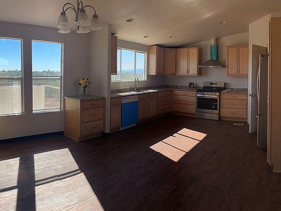 4BR/2BA MSFH on an acre with no HOA and backs to state land! Spacious open floor plan with 2,432 sqft and includes a 16' x 32' bonus/game room! Bright updated modern kitchen features stainless appliances and loads of counter tops and cabinets. A wall of pantry space in dining area flows into a spacious family room that provides perfect setting for holiday entertaining and large family gatherings. Split bedroom plan offers additional privacy. Large Primary bedroom has walk in closet and ensuite boasts two vanities, a tub, and a separate shower. Ample closets throughout, laundry room with cabinets, and large bedrooms. Plenty of space for your toys, boats or RV, and views of the mountains and stunning sunsets. Two dwellings and up to two farm animals are allowed per zoning. Convenient to I-10