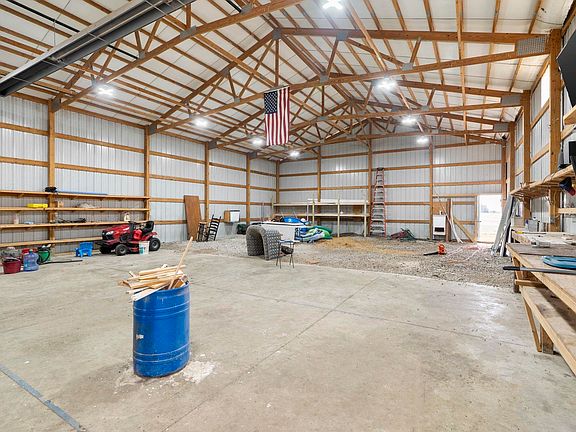 This inviting property features a 60x40 pole barn (half concrete floors), an above-ground pool, and plenty of room to enjoy on 1.77 acres. The main part of the home includes 3 bedrooms and 2 full baths, with a potential 3rd bathroom already plumbed in the basement. A former attached garage has been converted into two additional rooms, giving you a 4th bedroom and the possibility for a 5th. This flexible space can be finished for continued living use or easily converted back into a garage if preferred. Inside, the large living room is filled with natural light from oversized front windows. The dining room features original hardwood floors that flow down the hallway, and two of the main bedrooms have matching hardwood hidden under the carpet. The primary bedroom offers an ensuite bath with a stand-up shower and direct access to the back patio. The kitchen includes ample cabinet space, a breakfast bar, and all appliances. A spacious laundry room and mudroom sit just off the kitchen for added convenience. A versatile property with storage, space, and endless potential!