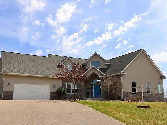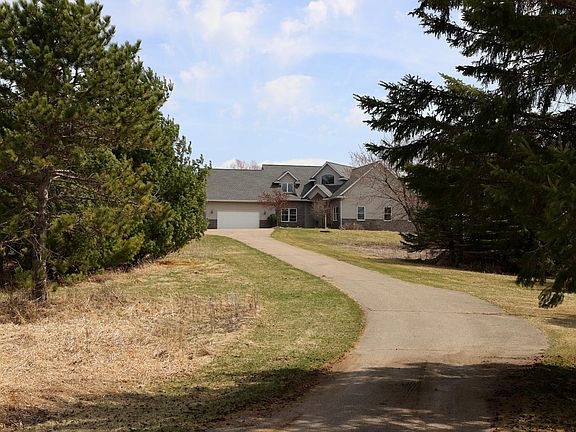 Beautiful custom home situated on 37 acres! Gorgeous views of land and ponds from the 2 story living room. Main floor has open floor plan, master suite, charming office, laundry, new flooring and paint. Lower level is fully finished and walks out to property. This 4 bedroom, 4 bath home has character and charm throughout. Property includes 2 pole sheds, tillable land and pond views.