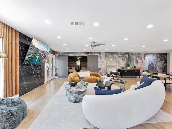 Partially covered poolGated groundsStylish furnishingsOutdoor lounge areasHigh ceilingsSmart-tv equipped patio spaceSolo stove fire pit