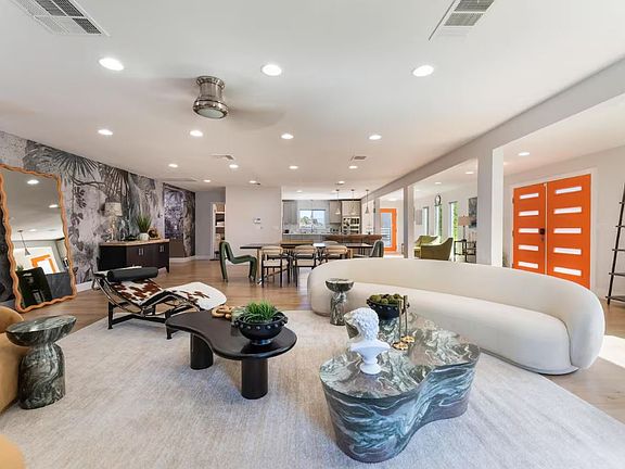 Inside, you'll find an open and elegant floor plan with high ceilings, stylish furnishings, and a relaxing living area with plush seating and an 85" Smart TV. The gourmet kitchen is fully equipped with stainless steel appliances, granite countertops, a Keurig, cookware, and premium tools perfect for long-term guests who enjoy cooking at home.