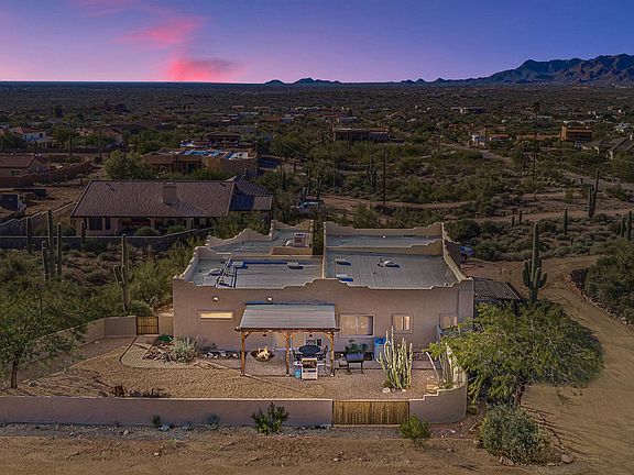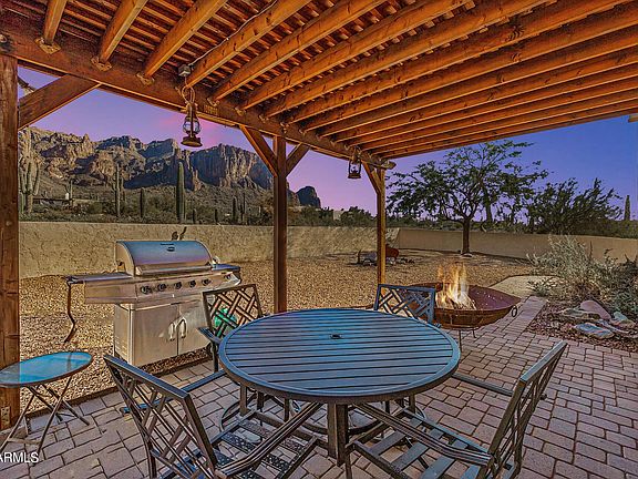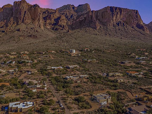 **Charming Santa Fe style home tucked away on over an acre at the base of the Superstition Mountains** Gorgeous mountain and city views all around! Main house features 2 large bedrooms with walk-in closets, granite counters, upgraded tile flooring and bathrooms. Huge laundry room with pantry and utility sink. Abundant storage throughout. The guest house has 2 private entrances with living room, kitchenette, large bedroom and full bath. The possibilities here are endless! A private patio with hot tub is situated just outside the casita where you can stargaze until your heart's content. Attached over-sized garage with tons of extra workshop space and more storage! A perfectly peaceful and serene fenced backyard features a covered, pavered patio where you can enjoy your morning coffee and