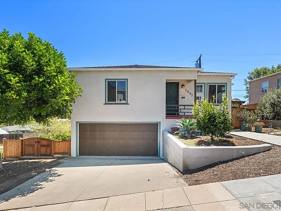 Beautiful Elevated Corner View lot Art Deco Inspired home in El Cerrito (near SDSU), lives larger than square footage, huge deck off dining room with large garden space. Light and bright throughout... Gleaming wood floors, updated kitchen stainless appliances and bath, 2 car garage with 2 off street parking spaces. Laundry inside. Room to build and ADU or 2. Unfinished room under home has outside and garage access (could be finished for Jr ADU). Some original built-ins with Bake-Lite handles, too. Fully fenced with fruit trees, fire pit and room to roam. This will not last....
