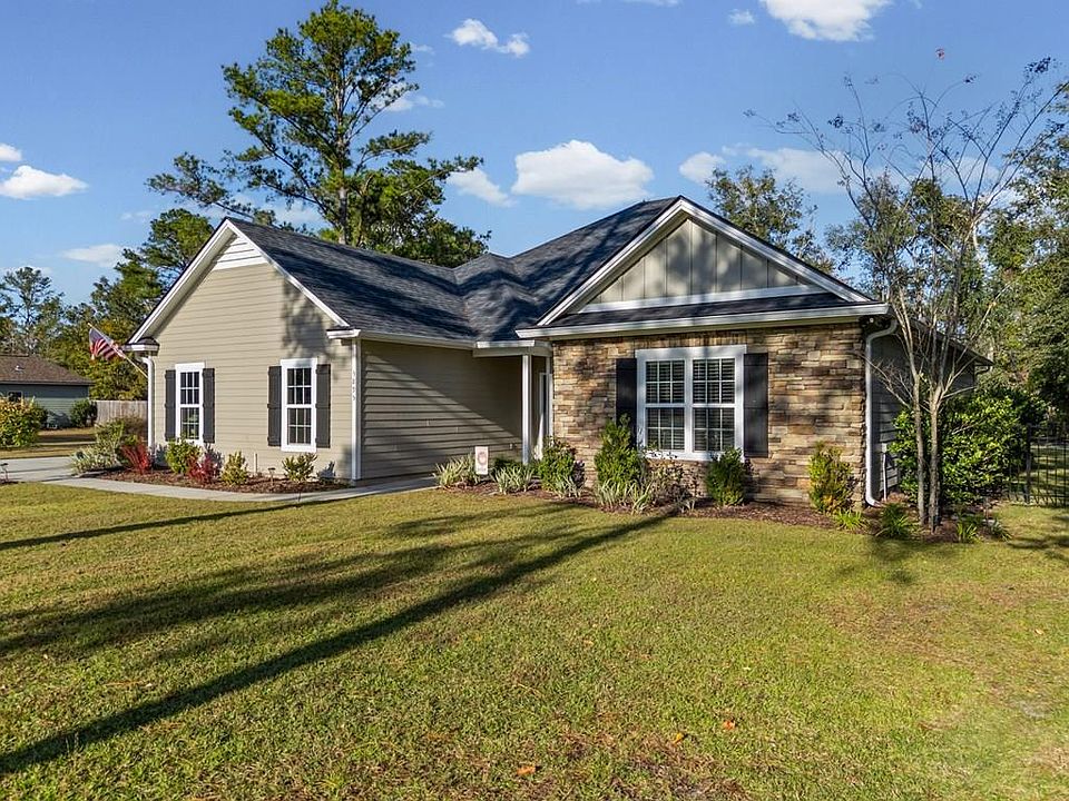 Discover exceptional craftsmanship and peaceful country living in this stunning 4-bedroom, 3-bathroom home located in the desirable Hidden Cove community. Situated on 2.03 acres, this property offers a spacious split floorplan designed for comfort and privacy. The living room features a striking tray ceiling with decorative beams, an elegant electric fireplace, and charming shiplap accents. The kitchen impresses with abundant counter space, a walk-in pantry, and a bright informal dining area—perfect for everyday living and entertaining. Outdoor living has been elevated with a serene screened-in porch and an extended custom patio framed by a charming sitting wall. The primary suite offers a quiet retreat with a large layout, double closets, dual vanities, a tiled shower, and a relaxing soaking tub. Guests will appreciate the convenience of a secondary bedroom with its own private en-suite bathroom. And for those who love projects, storage, or hobbies, the large metal workshop with electricity and two roll-up doors is a dream come true. This Hidden Cove gem offers the lifestyle you've been dreaming of— peaceful, spacious, and ready to welcome you home.