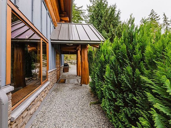 Stunning West Coast Log Home crafted by Pioneer Log Homes (Timber Kings, Williams Lake), embodies quintessential rustic luxury with sweeping views of Sechelt Inlet & surrounding mountains. Massive hand-crafted logs, warmth & character with wrap around windows, soaring ceilings & custom carvings. The Great Room is perfect for curling up by the fire to watch a winter storm roll in or soaking up spectacular sunsets. Heat pump, energy-efficient windows, solar panels, & heavy-gauge steel roof ensure lasting comfort, while the loft style stainless kitchen & open layout flow easily for gatherings or a quiet hangouts. Featuring a carriage house w/ spacious garage below for all your outdoor gear & guest suite above—perfect for friends or B&B. Truly a one-of-a-kind coastal sanctuary.