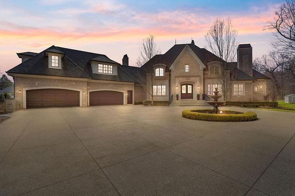 LSSD • Magnificent French Chateau estate situated on more than four acres of gorgeous grounds overlooking pond and open space; on the perimeter of Stoney Creek Metro Park. Incomparable custom appointments with stone, wood and wrought iron throughout this masterpiece home. Massive entertainer’s kitchen features dual islands, limestone flooring, octagonal breakfast room with phenomenal views, and cozy hearth space. Luxurious owners’ suite with wet bar, spacious wardrobe rooms, bathroom and bedroom with sitting area overlooking tranquil grounds. Two-story wall of windows in Great Room with fantastic limestone fireplace. Executive library with custom woodwork, fireplace, and exposed beams. Gracious Foyer boasts circular wrought iron staircase with office / library adjacent. Current owners finished the entire lower level with huge bar area, two separate seating areas, workout room, huge recreational room, bathroom. Gated entrance on long winding drive leads up to this exclusive estate.