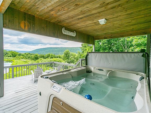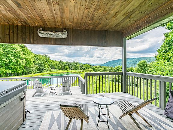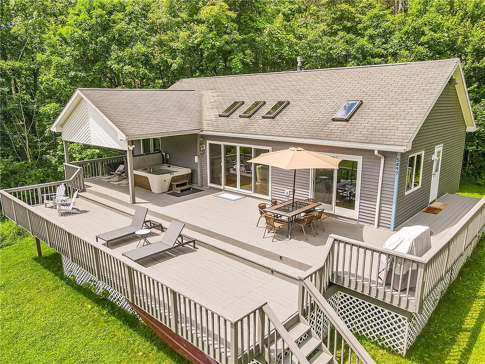 Welcome to your own private 3 bed, 3 bath paradise nestled on a sprawling 52-acre estate with breathtaking views of Canadice Lake. Inside, you'll be greeted by the chic contemporary design and abundance of natural light that floods through the wall-to-wall windows and skylights. With new weatherproof flooring installed downstairs (2020), and a complete kitchen remodel upstairs (2022) there's a perfect blend of luxury, natural beauty, and modern amenities. The primary bedroom opens up into a large deck overlooking the lakes, a pond, and rolling hills, providing a majestic backdrop right at the foot of your bed. minimal light pollution turns the deck into an astronomers paradise in the evening. Relax and unwind in the new sauna, or soak in the new hot tub while overlooking the most coveted feature of the Finger Lakes. The numerous hiking trails and ponds allow you the ultimate freedom to explore. This property is being sold turn-key -- On average, this property has made 76k per year over the past 3 years being used part time as a STR. Sqft based on appraisal. *PLEASE DO NOT ENTER PROPERTY WITHOUT APPOINTMENT* Delayed showings until 7/2 3pm, delayed negotiations until 7/7 at 12pm