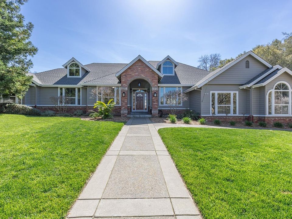 Located on a quiet cul-de-sac, this gorgeous single-story 3,512 square foot, 4 bedroom home, offers access to great schools and is a short walk to hiking and wine tasting. The 4th. bedroom doubles as a home office with a built in desk and shelving. This home sits on a level, nearly half Acre lot located near Trione-Annadel State Park. The Primary Bedroom includes a sitting area with a wood burning fireplace (gas starter),sunken spa bathtub and walk in closet. The Living room, family room & kitchen each have French doors which lead out to a spacious backyard with a brand new pool and deck which are perfect for entertaining. You will also find a pool shed (or your new She Shed!) The outdoor space includes MinkaAire interior and exterior Kona wood ceiling fans, shiplap wall, stone flooring, large slider and windows. The landscaping includes a travertine paver pool deck, a lush lawn area, metal raised beds, and five fruit trees (Italian variety blood orange, Navel orange, Babcock peach, Stella Cherry, and an apple variety that produces 6 types of apples). Trione-Annadel State Park and scenic Spring Lake are just a short walk away. This property offers the ultimate in Wine Countryliving!