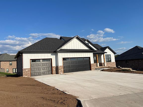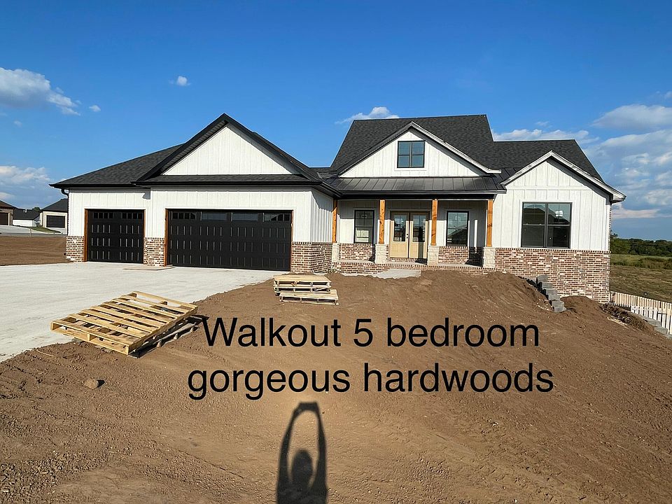 Stunning mostly brick modern farmhouse on a spacious corner lot in one of Springfield's premier gated communities--Lions Gate. This 4,004 sq ft walk-out basement home offers 5 bedrooms, 3.5 baths, and multiple living areas, designed with both style and function. The open floor plan is ideal for entertaining and features hardwood, tile, and carpet on the main level, with luxury vinyl plank, tile, and carpet in the basement. Quality construction includes 6x6 basement walls and insulated garage walls, ceiling, and doors. You'll love the dual laundry rooms (main level and basement), ample storage, and convenient John Deere room. As construction progresses, finishes and updates will continue to elevate this home. Schedule a walk-through to preview the vision--this one belongs on your must-see list!